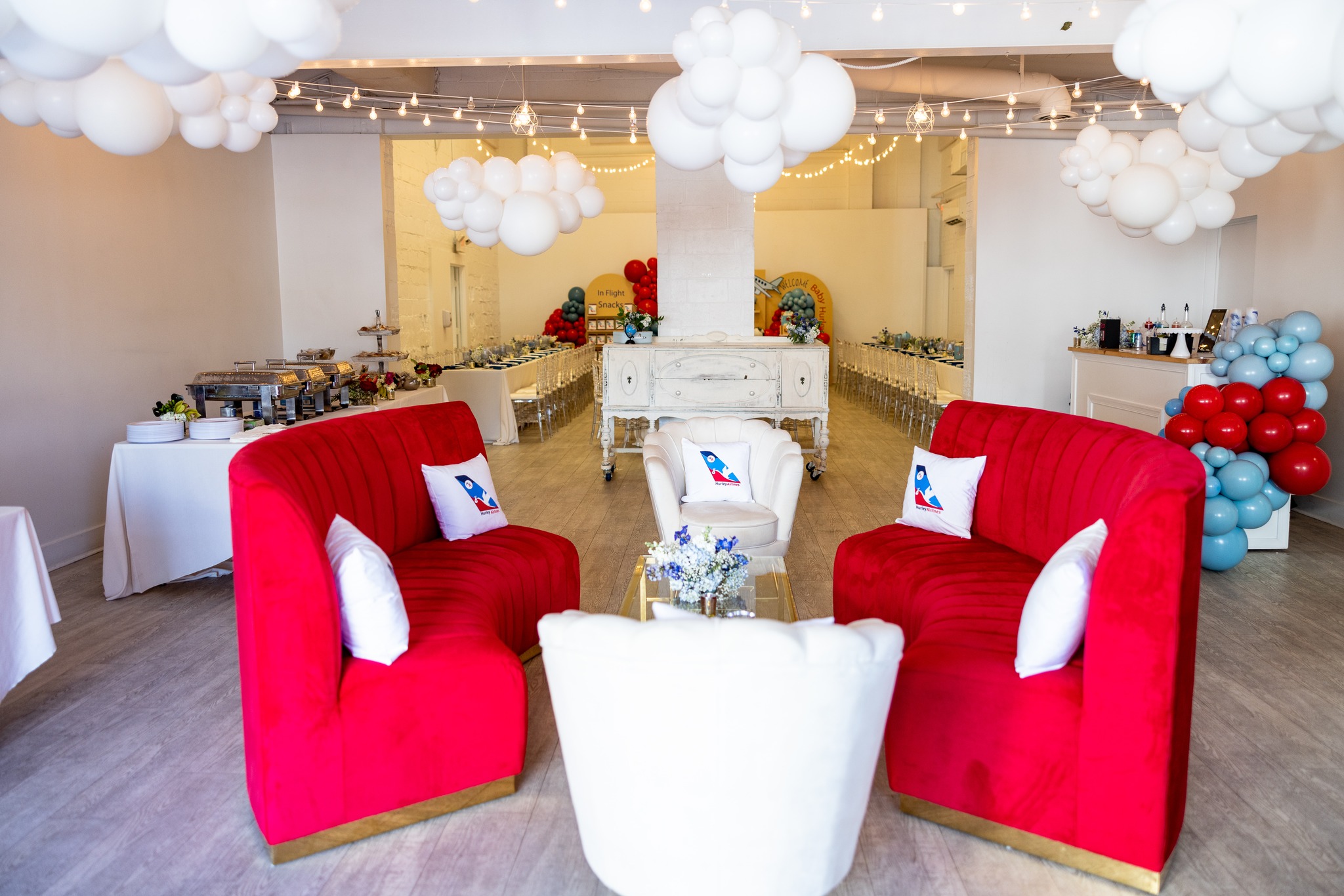 Prism 1 holds 125 seated/175 standing. It comes with tables/chairs, bar on wheels, and a kitchenette. It’s $375/hour.