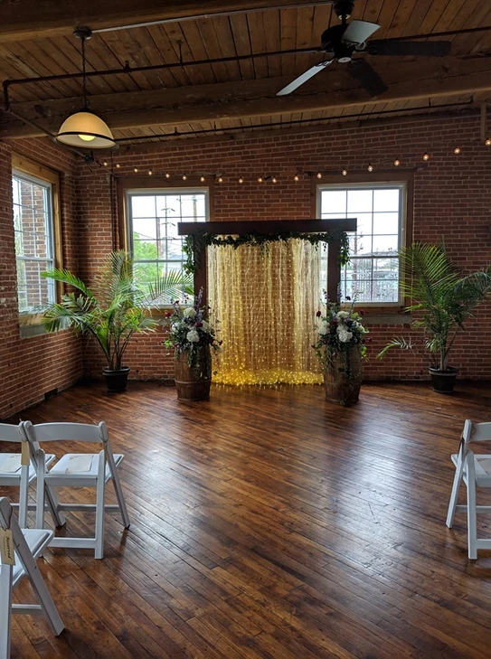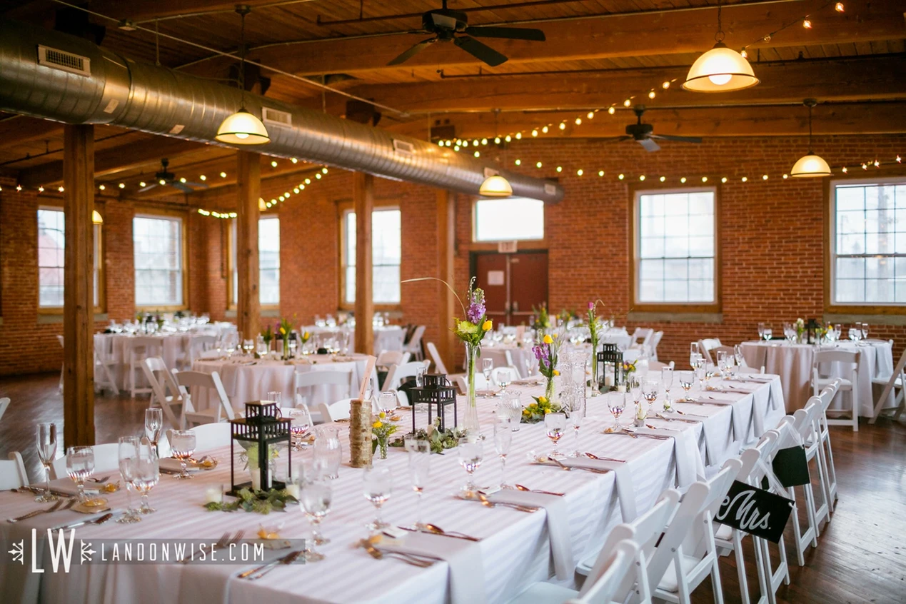 Built in 1918, the Carlisle Ribbon Mill offers a unique loft-style atmosphere perfect for various events and social gatherings. The venue features natural brick walls, exposed wood beams, and maple flooring, creating a warm and inviting environment for weddings, receptions, anniversaries, birthdays, reunions, private parties, banquets, and corporate/business meetings. The historic charm combined with modern amenities makes it a versatile and appealing choice for your special day.