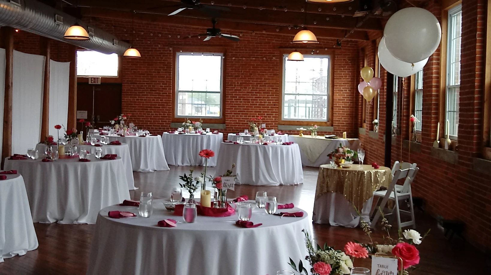 - Special Features: Natural brick walls, exposed wood beams, maple flooring, industrial decor, rooftop scenery, and historic venue charm.
